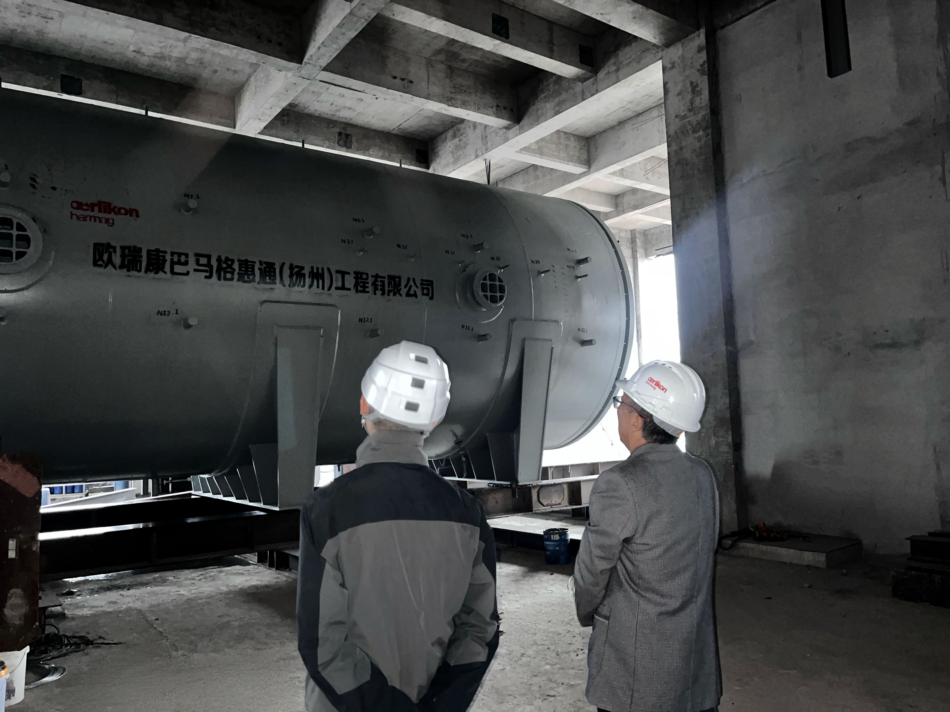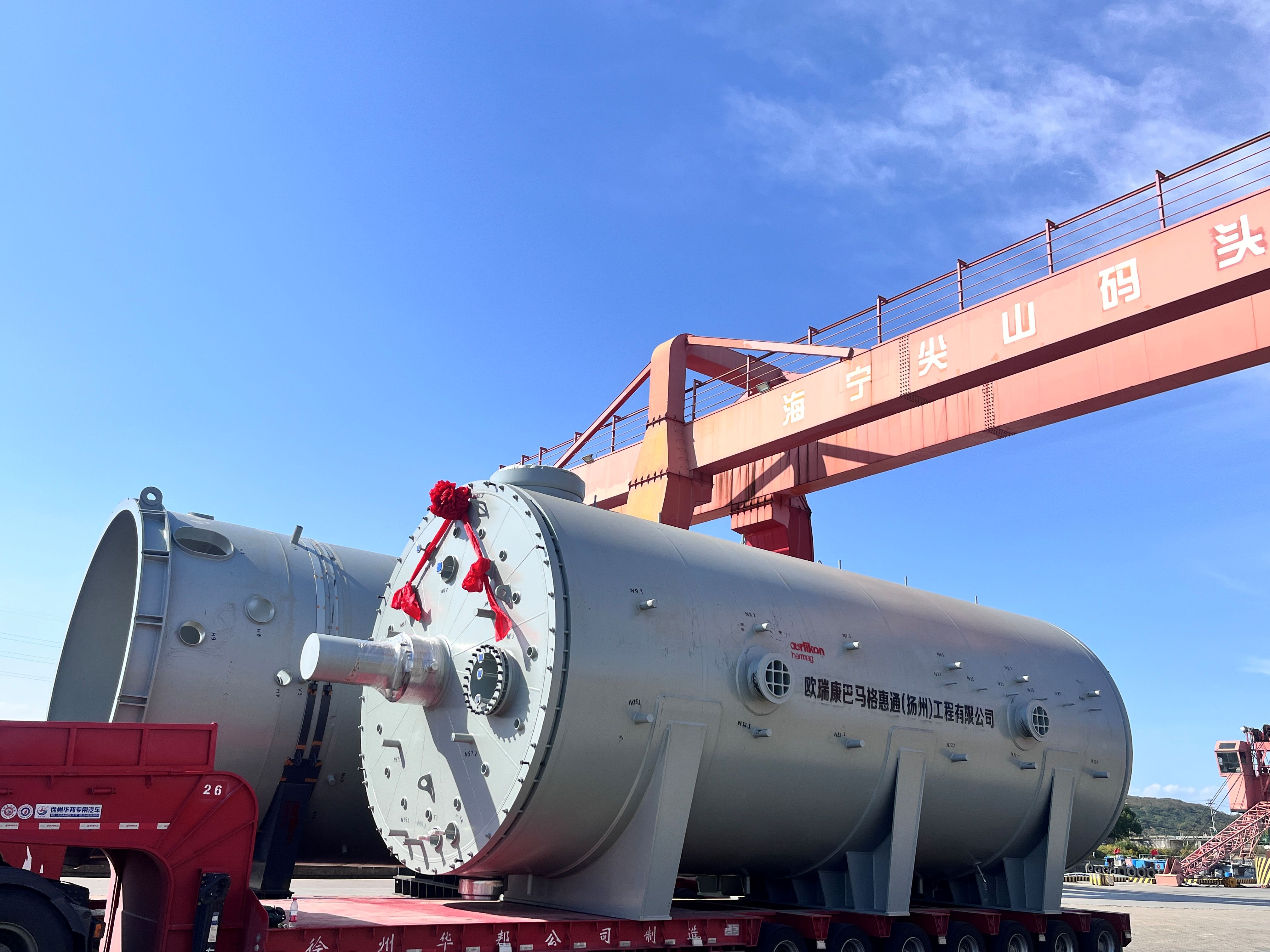 最后一台巨型反应器在深秋的阳光下稳稳落座,现场顿时爆发出热烈的掌声——这一刻,嘉兴项目现场见证了一个重要里程碑的诞生。由欧瑞康巴马格惠通(扬州)工程有限公司(以下简称“OBHE”)总体设计的5台超大型聚合反应器,历经千里跋涉,全部顺利完成吊装,巍然屹立在项目现场。