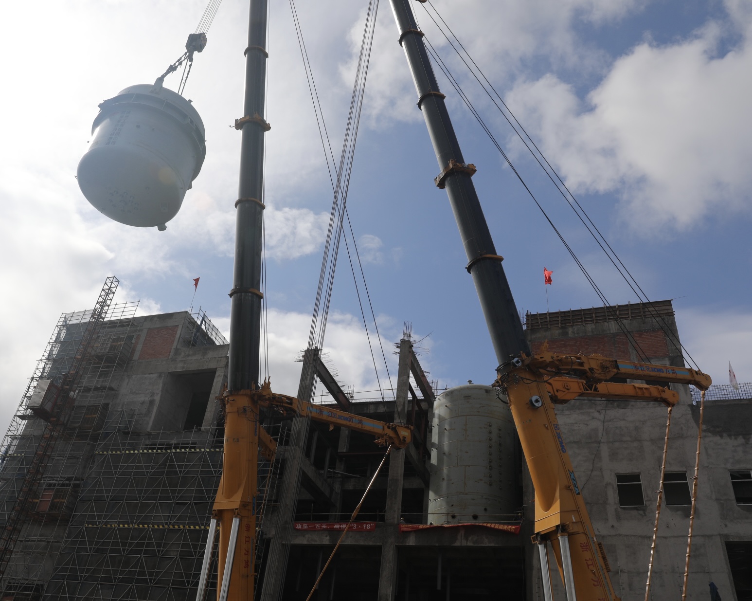 从起吊到落位,每一个动作都经过精密计算,每一个环节都严格把控。当最后一台反应器精准就位时,现场工程师们疲惫却坚定的面容,成为了这个秋天最动人的画面。
