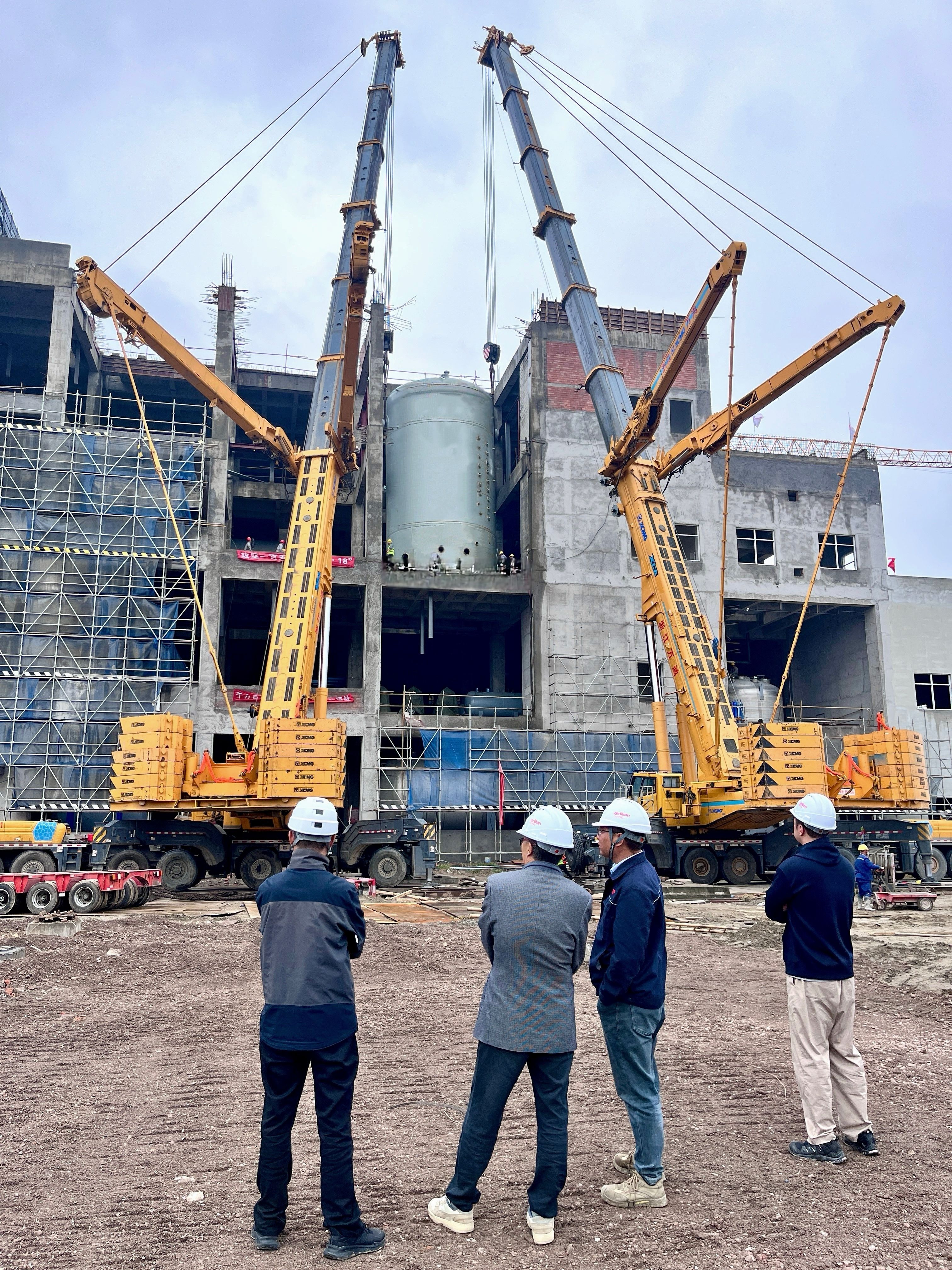 真正的考验在吊装现场展开。五台庞然大物需要在短短两天内完成精准定位,这是一场技术与毅力的双重考验。面对数百吨的设备重量和有限的作业空间,OBHE团队凭借丰富的经验和精湛的技艺,交出了一份完美答卷。